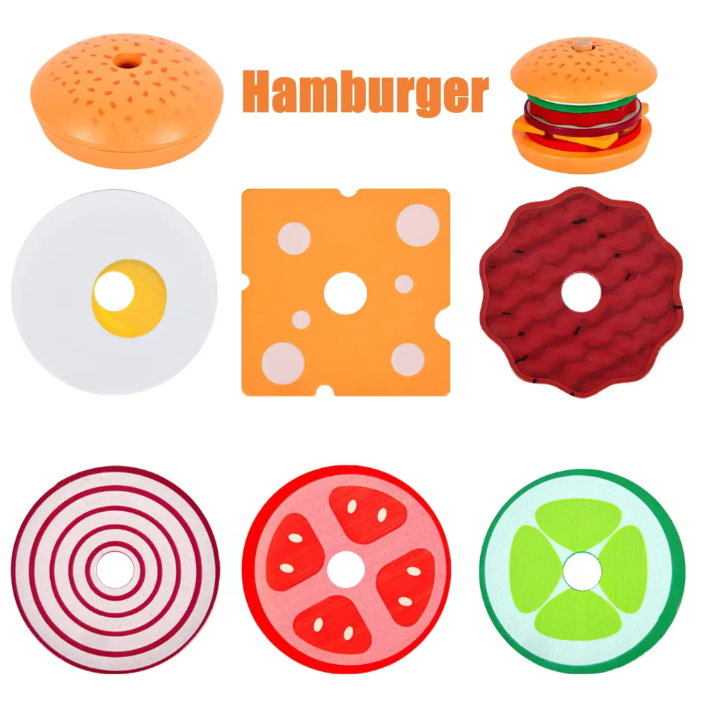 Com peças de madeira coloridas e cartas ilustradas, as crianças aprendem brincando enquanto montam deliciosos “lanches” inspirados no mundo real.
