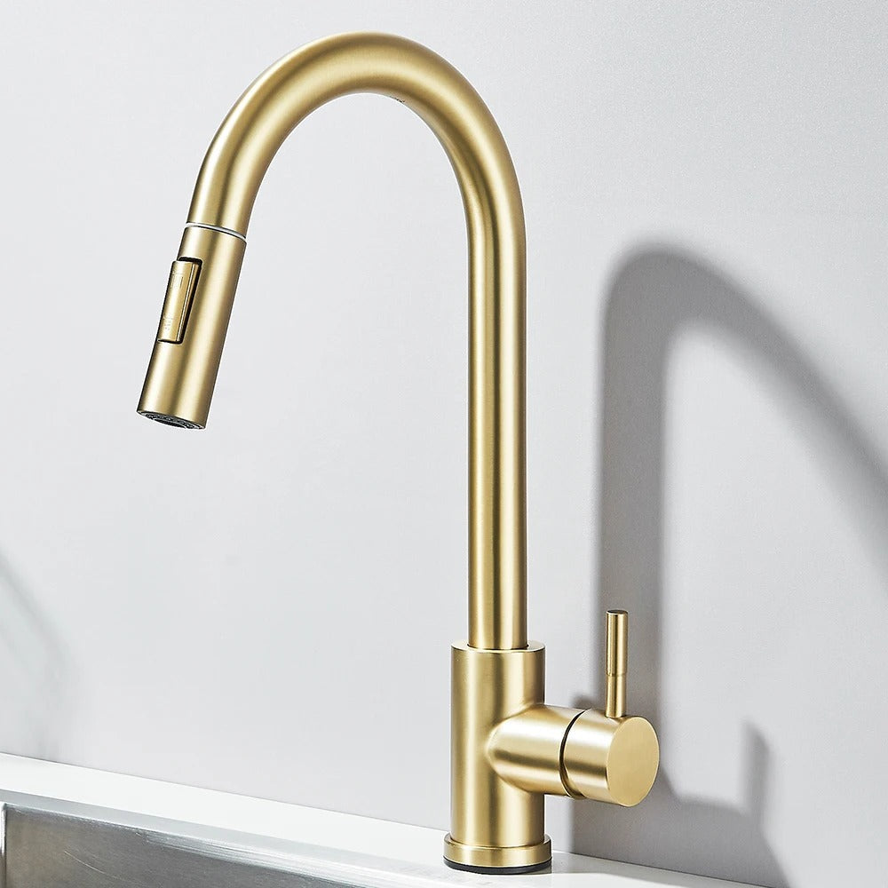 Feita com um acabamento em dourado elegante, esta torneira se torna o centro das atenções em qualquer cozinha.